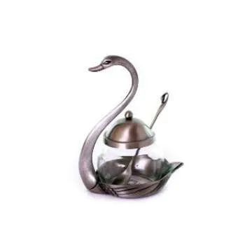 Nickel Swan Shape Honey Dish and Spoon for Rosh Hashanah