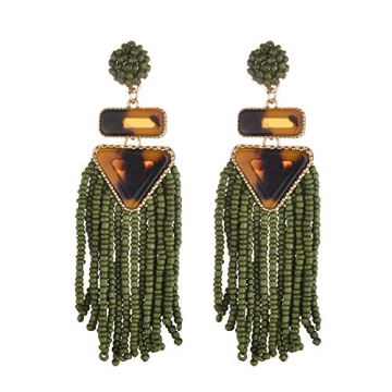 Nicole Miller New York Green Beaded Tassel Drop Leopard Print Triangle Dangle Earrings