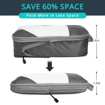 Show more Discover the revolutionary NICOSHOW compression packing cubes, designed to transform your travel experience! With these innovative packing organizers, you'll maximize your luggage space like never before. Featuring a two-zipper system, these cubes can compress your clothing and save up to 60% of space in your suitcase. Travel efficiently and avoid the chaos of rummaging through a messy carry-on.