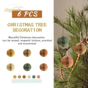 NICROLANDEE Christmas Hanging Decorations, 6 PCS Nature Round Glitter Edge Paper Honeycomb Ornaments, Green Brown Mini Paper Lanterns Ornament for Christmas Tree Décor, New Years Party Home Decor
