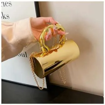 Niction Acrylic Evening Clutch Women Chic Metal Purses Shiny Barrel-Shaped Handbag Crossbody Bag for Wedding Parties 2024