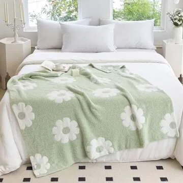 NIDITW Ultra Soft Cozy Green Plants Sunflower Throw Blanket Microfiber Flowers Daisy Knitted Blanket Lightweight Fluffy Fleece Blanket for Home Sofa Couch 50x60 Inches (Light Green)