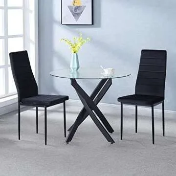 NIERN Round Tempered Glass Dining Table for 2-4 with Metal Legs, 35.5 in Modern Small Kitchen Table for Kitchen Dining Room (Black)