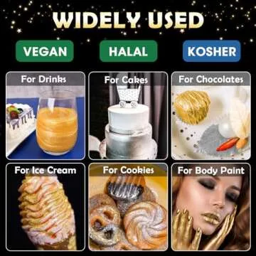 Show more Transform ordinary treats into extraordinary delights with our premium NiHome Edible Food-Grade Glimmer Powder Glitter! This dazzling edible luster dust is not just your average baking accessory; it's an artistic ingredient designed to elevate your culinary creations. Certified KOSHER, HALAL, HACCP, and Vegan, this glitter is completely safe and caters to various dietary needs. Whether you are a professional chef or a home baker, our 10 g (0.35 oz) pot of vibrancy will help you add a stunning glimmer to cakes, cocktails, cookies, and much more!