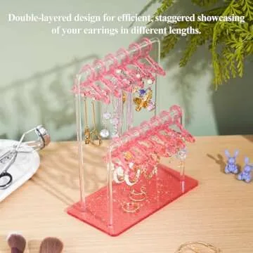 NiHome Glitter Acrylic Earring Holder - Double-Tier Display for 48 Pairs (Pink)