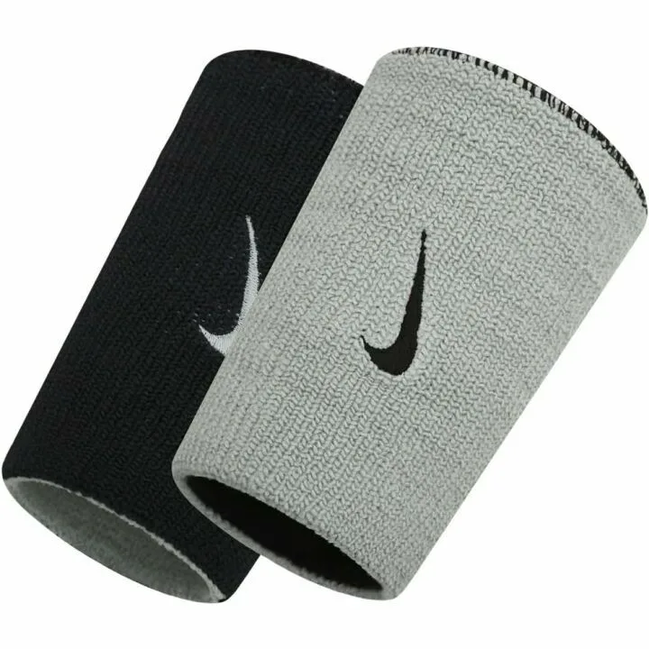 Nike Dri-Fit Doublewide Wristbands - Black & Base Grey, One Size Fits Most