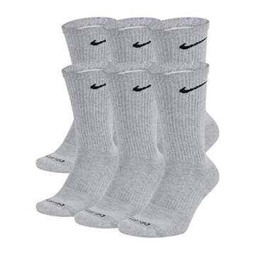 Show moreIntroducing the ultimate in comfort and style - the Nike Dri-Fit Training Everyday PLUS MAX Cushioned Crew Socks. These socks are not just an accessory; they are an essential addition to your daily wardrobe. Crafted by Nike, a leader in athletic apparel, these socks are designed to provide unparalleled comfort and durability, making them perfect for those who lead an active lifestyle. Featuring a stylish Wolf Grey color with the iconic Black Swoosh Logo, these socks bring a modern flair while ensuring your feet stay comfortable throughout the day.