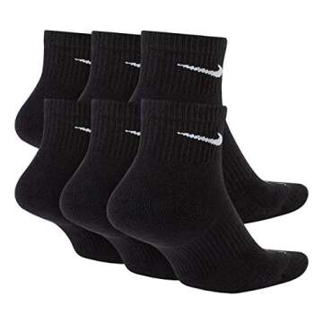 Nike Everyday Plus Cotton Cushioned Dri-Fit Ankle Socks (6 Pair) (Black/White, Medium)