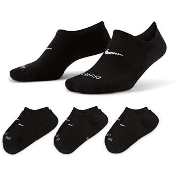 Show moreExperience unmatched comfort and style with the Nike Everyday Plus Lightweight No Show Footies. Designed for active lifestyles, these footies come in a convenient pack of three, offering you excellent value and a variety of looks with their classic black and white color scheme. Crafted with advanced materials, these socks provide a lightweight and breathable feel, perfect for athletic wear or casual outings. The ergonomic design ensures a snug fit that stays in place without the hassle of slipping, making them an essential addition to any wardrobe. Ideal for those who prioritize both comfort and stylish utility, these footies are perfect for everyday adventures or intense workouts.