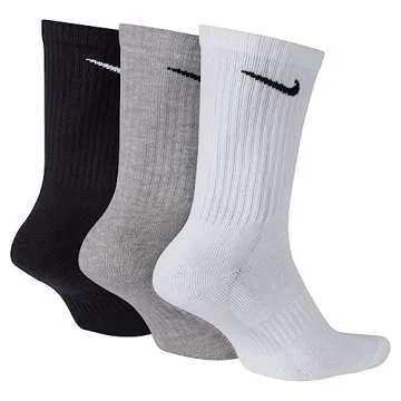 Nike Unisex Everyday Cotton Cushioned Training Crew Socks 3 Pack (B(SX7664-964)/W, Large)