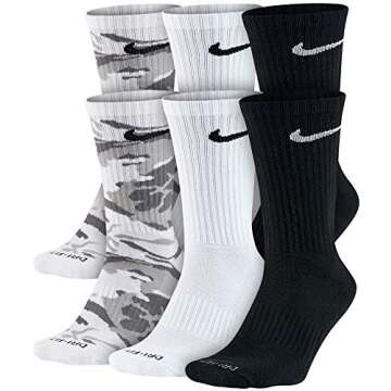 NIKE Unisex Everyday Max Cushion Crew Socks (6 Pairs), Grey Camo/White/Black, Large