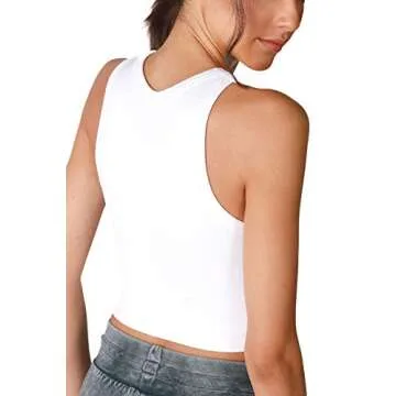 NIKIBIKI Women Seamless Chevron High Neck Crop Top, Made in U.S.A, One Size (White)