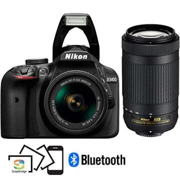 Introducing the Nikon D3400 24.2MP DSLR Camera with 18-55mm VR and 70-300mm Dual Lens (Black) (Renewed) – a perfect blend of power and portability for photography enthusiasts and budding professionals alike! With an impressive 24.2MP sensor, this camera offers stunning image quality, whether you're capturing vibrant landscapes, detailed portraits, or fast-action shots. The included AF-P DX NIKKOR 18-55mm and 70-300mm lenses ensure you're equipped for a wide range of shooting scenarios, from wide-angle shots...