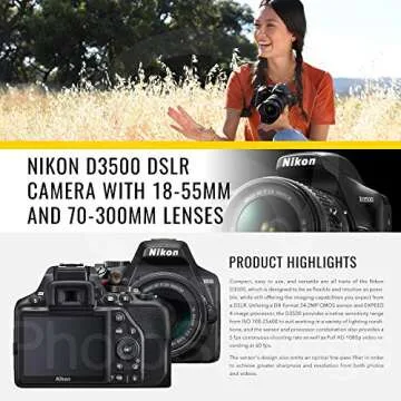 Nikon D3500 DSLR Camera with 18-55mm and 70-300mm Lenses + 32GB Card, Tripod, Flash, and Bundle