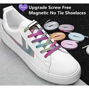 nikwesm Magnetic No Tie Elastic Shoe Laces for Kids Adults, No screw, One Size Fits All (silver rainbow)