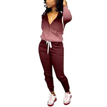 Nimsruc Two Piece Outfits For Women Casual Tracksuit Hoodie Jogging Suits Long Sleeve Sweatsuit Pants Sets Wine Red Gradient L
