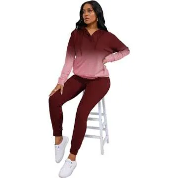 Nimsruc Two Piece Outfits For Women Jogging Suits Casual Sweatsuits Jogger Tracksuits Long Sleeve Hoodie Matching Sets Gradient RedA XL
