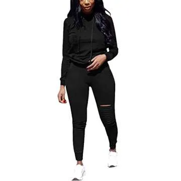 Nimsruc Women's Two Piece Outfits Casual Long Sleeve Pant Sets Sweatsuit Tracksuit Black M