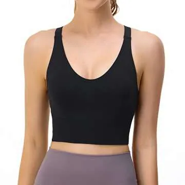 nine bull Strappy Sports Bras for Women,Seamless Yoga Bra Medium Support Workout Padded Bra (Black,M)