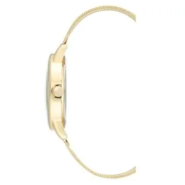 The watch is completed with a luxurious gold-tone mesh bracelet that offers a delicate yet bold statement, effortlessly transitioning from day to night. The adjustable sliding buckle ensures a perfect fit, making it comfortable for all-day wear. Whether you're dressing up for a special occasion or simply want to add a chic accessory to your everyday outfit, this watch is the ideal choice for those who appreciate sophisticated detail and quality craftsmanship.