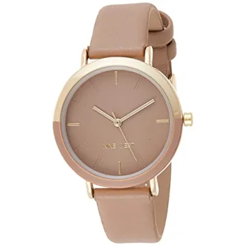 Show moreIntroducing the Nine West Women's Gold-Tone and Tan Strap Watch, NW/2346GPTN — a remarkable fusion of elegance and simplicity perfect for every occasion. This stunning timepiece features a mineral crystal lens that protects a striking matte tan dial, graced with gold-tone hands and markers that provide an eye-catching focal point. The beautifully crafted tan strap boasts a reliable buckle closure, ensuring a comfortable and adjustable fit for any wrist size. Its lightweight design allows you to wear it all day without discomfort, making it a versatile option for your daily or special occasion outfits.