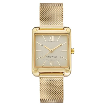 Show moreIntroducing the exquisite Nine West Women's Mesh Bracelet Watch, where elegance meets contemporary flair. This stylish timepiece is designed to elevate your attire, making it a must-have accessory in any woman's jewelry collection. Featuring a durable mineral crystal lens that protects a stunning light champagne dial embellished with gold-tone hands and markers, this watch echoes classic sophistication with a modern twist. The black printed inner minute track not only adds to its aesthetic appeal but also enhances readability, making it the ideal choice for those who value both beauty and functionality.
