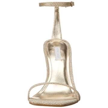 Show moreStep into glamour with the Nine West Women's YESS Heeled Sandal in breathtaking **Gold Glitter**. This stunning sandal is designed for those who dare to make a statement with their footwear. Featuring an ultra sexy, barley-there silhouette, this heel elevates any outfit, perfect for both day and night. The sky-high heels meet a sophisticated modern square toe, exuding elegance and style, making these sandals a must-have in your closet. The adjustable ankle strap with buckle closure ensures a snug and secure fit, while the open toe design keeps your look fresh and flirty. Whether attending a dazzling gala or a casual brunch, the YESS sandal is your ultimate companion, glimmering with every step you take.