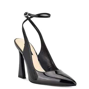Show moreStep into elegance with the Nine West Womens Tabita3 Pump. This stunning pump reinvent the classic slingback style by incorporating a fashionable ankle strap and a chic, sculpted high heel, making it an irresistible choice for women seeking both sophistication and style. Crafted from premium black patent leather, this shoe radiates a sleek shine that effortlessly complements any outfit. Whether you're dressing for a formal occasion or a casual outing, these pumps promise to elevate your wardrobe with their pointed toe that elongates the leg and a comfortable fit that allows for all-day wear.