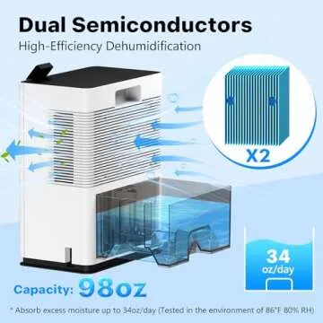 Discover the exceptional NineSky Dehumidifier, a compact yet powerful 98-ounce moisture removal solution designed for homes, bathrooms, bedrooms, and basements up to 800 sq. ft. Utilizing advanced semiconductor condensation technology, this dehumidifier operates seamlessly, effectively extracting up to 34 ounces of water daily even under challenging humidity conditions of 30°C and 80% relative humidity. Say goodbye to unwanted dampness and hello to a fresh, welcoming home...