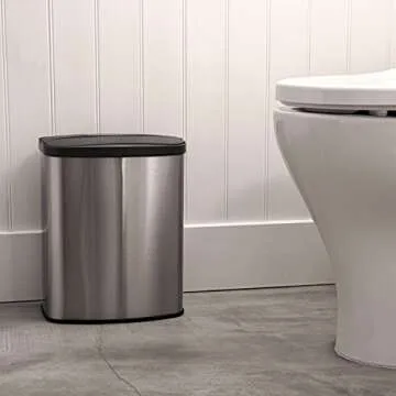 Show more Discover the ultimate in kitchen convenience with our state-of-the-art motion-sensor trash can set from Ninestars. This sophisticated kitchen essential boasts a high-quality water-resistant design to prevent moisture damage. Its fingerprint-resistant stainless steel base ensures that your trash cans remain sleek and clean, even in the busiest of kitchens. Both the tall kitchen can and the compact bathroom can are crafted with advanced delay sensing technology that boosts battery life and stops unnecessary openings triggered by playful pets or curious children.