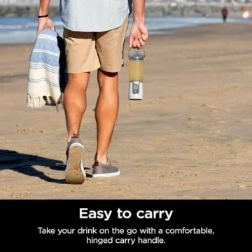 This blender is powered by Ninja's blast technology, which utilizes a ribbed vessel to create an impressive vortex that efficiently blends even the toughest frozen ingredients. The durable stainless steel BlastBlade Assembly ensures that your smoothies are perfectly smooth every time. Plus, with a comfortable hinged carry handle, you can seamlessly take your drink along wherever life takes you.