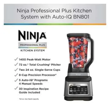 Show moreThe Ninja BN801 Professional Plus Kitchen System with Auto IQ is designed to empower your culinary adventures! This robust kitchen system combines the power of 1400 watts with innovative features to revolutionize meal preparation. Featuring Total Crushing Blades and a Pro Extractor Blade assembly, you can effortlessly create perfectly crushed ice for frosty smoothies, frozen drinks, and nutrient-extracted shakes. This renewed model highlights Ninja's commitment to quality, bringing professional-grade performance right into your kitchen.