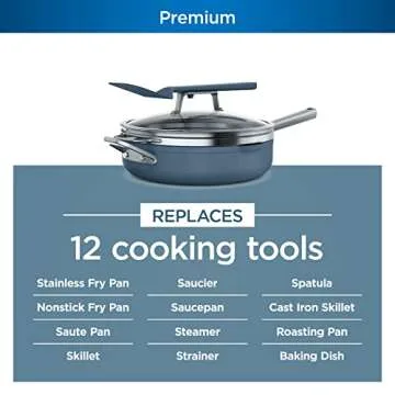 Show more The Ninja 4-Quart PossiblePan is the ultimate kitchen powerhouse that revolutionizes the way you cook. Combining the functionality of 12 cooking tools, this pan is not just a cookware piece; it's an essential companion for every meal. Designed with convenience in mind, the PossiblePan replaces traditional cooking methods, thanks to its remarkable ability to shift seamlessly from stovetop to oven to table. It’s compatible with all cooktops, and it's even oven-safe up to 500°F. The unique integration of an ergonomic lid design allows for the storage of utensils while enhancing the aesthetics of your kitchen.