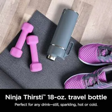 Ninja DW2401BL Thirsti 24oz Travel Water Bottle, For Carbonated Sparkling Drinks, Colder and Fizzier Longer, Leak Proof, 24 Hrs Cold, Dishwasher Safe, Stainless Steel Insulated Tumbler, Storm Blue