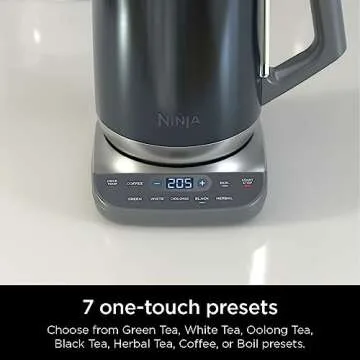 Ninja KT200BL Precision Temperature Electric Kettle, 1500 watts, BPA Free, Stainless, 7-Cup Capacity, Hold Temp Setting, Blue Stainless