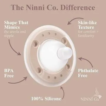 Ninni Co Breastfeeding Promoting Pacifier - Patented Orthodontic Pacifier, Bpa Free,Phthalate Free,Pvc Free Silicone with Natural Skin Texture and Nipple Shape Supporting Healthy Orofacial Development - Oatmeal (2 Pack)