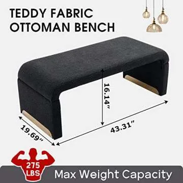 NIOIIKIT 43.3'' Ottoman Bench with Boucle Fabric, Faux Fur End of Bed Bench with Golden Metal Legs, Upholstered Entryway Bench for Living Room, Bedroom, Entryway (Black)