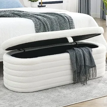 Show moreIntroducing the NIOIIKIT 45.5” Oval Storage Ottoman Bench – a perfect blend of functionality and elegance for your home. This versatile piece is designed to elevate your space while providing ample storage for blankets, pillows, books, and other essentials. With its spacious interior measuring 40 x 13.5 x 12 in (W x D x H), you can keep your area neat and organized. The modern aesthetic of this teddy fabric ottoman not only enhances your decor but also adds a stylish touch wherever you place it.