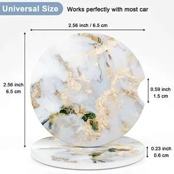 Nipichsha Car Coasters for Cup Holders, 2 Pack Absorbent Ceramic Car Cup Holder Coaster for Drinks, Cute Auto Assecories for Women Men, Size 2.56 in with Finger Notch & Cork Base, Gray Gold
