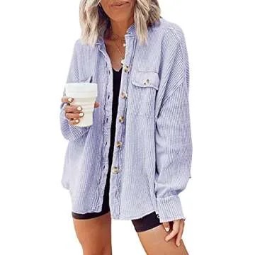 Nirovien Womens Waffle Knit Shacket Oversized Button Down Shirt Jacket Lightweight Spring Outfits Clothes(Light Purple,S)