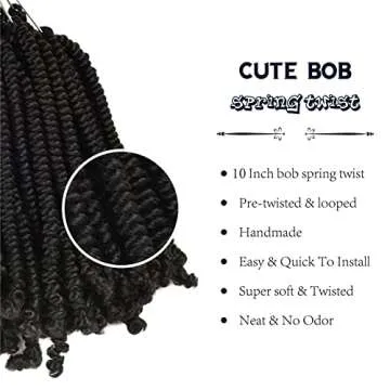 Niseyo Pre twisted Bob Spring Twist Hair 10 Inch 7 Packs Short Pre-looped Crochet Braid (1B/Natural Black)