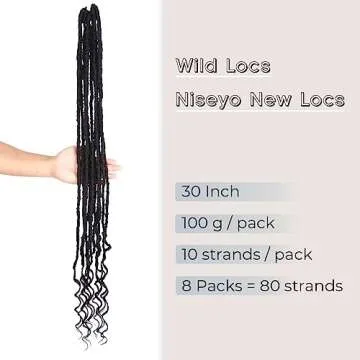Niseyo Wild Locs 30 Inch Distressed New Faux Locs with Curly Ends 8 Packs Long Soft Pre-looped Goddess Locs Crochet Hair (2#, Off Black)