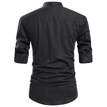 Show moreExperience the perfect blend of comfort and style with the NITAGUT Men Henley Neck Long Sleeve Linen Shirts. Designed to keep you cool during hot summer days, this shirt is crafted from a premium linen-cotton blend that offers a breathable and lightweight feel against your skin. With its classic henley neckline and stylish button details, this shirt effortlessly transitions from a casual beach day to a chic evening out. The roll-up sleeves provide versatility, allowing you to adjust your look on the fly, while the rich color options enhance your wardrobe's diversity.