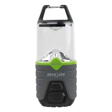 Show more Introducing the incredible Rechargeable Lantern Lamp from Nite Ize, a must-have companion for all your outdoor adventures and emergency situations. This remarkable lantern boasts an impressive 314-lumen output, illuminating your surroundings with bright, reliable light. Whether you're camping under a starry sky, tackling a garage project, or preparing for unforeseen power outages, this lantern is designed to meet all your lighting needs.