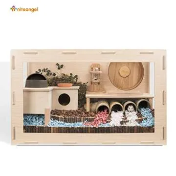 Show more This spacious hamster cage is the perfect sanctuary for your little furry friends, measuring an impressive 30 inches in length, 15 inches in width, and 17.7 inches in height. With its ample inner dimensions, it allows a thick layer of bedding that hamsters love to dig and tunnel in. Designed by the renowned brand Niteangel, this cage accommodates the natural instincts of your hamsters while offering an aesthetically pleasing addition to your home decor.