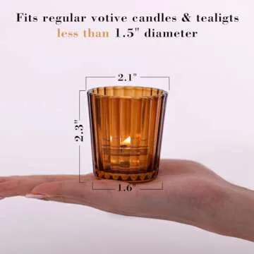 Show moreIntroducing the NITIME 24pcs Vintage Ribbed Amber Votive Candle Holders, an exquisite addition to your home decor that captures the essence of elegance and sophistication. Featuring a beautiful vintage amber color and a distinct vertical stripe design, these candle holders do more than just hold candles; they create an enchanting visual display when illuminated. Each holder is designed to enhance any setting, casting mesmerizing shadows and a warm, inviting glow that embodies the spirit of togetherness. Perfectly sized at 2.36 inches in height with variable diameters, they fit most standard votive and tealight candles, making them a versatile choice for any occasion.