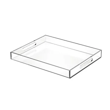 Show more Introducing the NIUBEE Acrylic Serving Tray – the perfect blend of functionality and elegance that caters to all your organizing needs. Measuring at 11x14 inches, this tray is crafted with durable acrylic, ensuring it’s not only beautiful but also built to last. Ideal for a wide array of settings, the transparent design minimizes visual clutter, making it suitable for any decor style. Whether you are serving up breakfast in bed, showcasing appetizers, or tidying up essential items like remote controls and magazines, this multi-functional tray elevates every occasion.