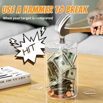NIUBEE Clear Piggy Bank for Adults Kids, Acrylic Piggy Bank for Boys Girls to Saving Money Jar Cash Coin, Must Break to Open, Perfect Size 8" H x 5" Diameter(Medium)