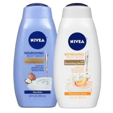 Show moreExperience the ultimate pampering session with the **NIVEA Body Wash Set**, featuring the luxurious **Shea Butter Nourishing Body Wash** and the invigorating **White Peach and Jasmine Scented Body Wash**. These exquisite 20 fluid ounce bottles are designed to transform your daily shower into a rejuvenating escape. The Shea Butter formula deeply nourishes and hydrates your skin, enveloping you in a gentle and warm fragrance that stays with you all day. In contrast, the White Peach and Jasmine variant awakens your senses with its refreshing, uplifting scent, making your bathing routine a revitalizing treat for both mind and body.
