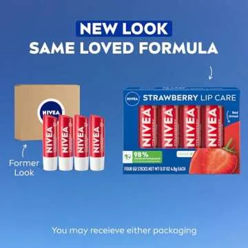 NIVEA Strawberry Lip Care, Tinted Lip Balm Pack with Shea Butter, Nourishing Oils and Vitamin C & E, 3-in-1 Moisture, Repair and Color, 0.17 Oz Stick, Pack of 4